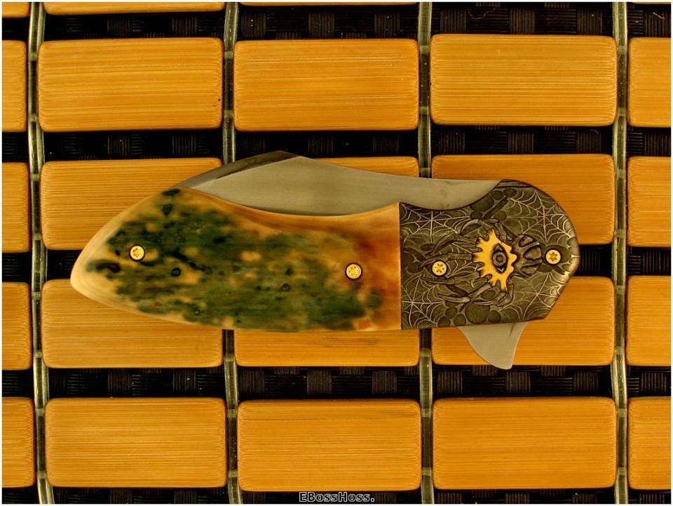 - And I am sorry I did not take a picture of the Backstrap which is hot blued steel with inlayed gold line spider webbing – just one more wonderful touch.