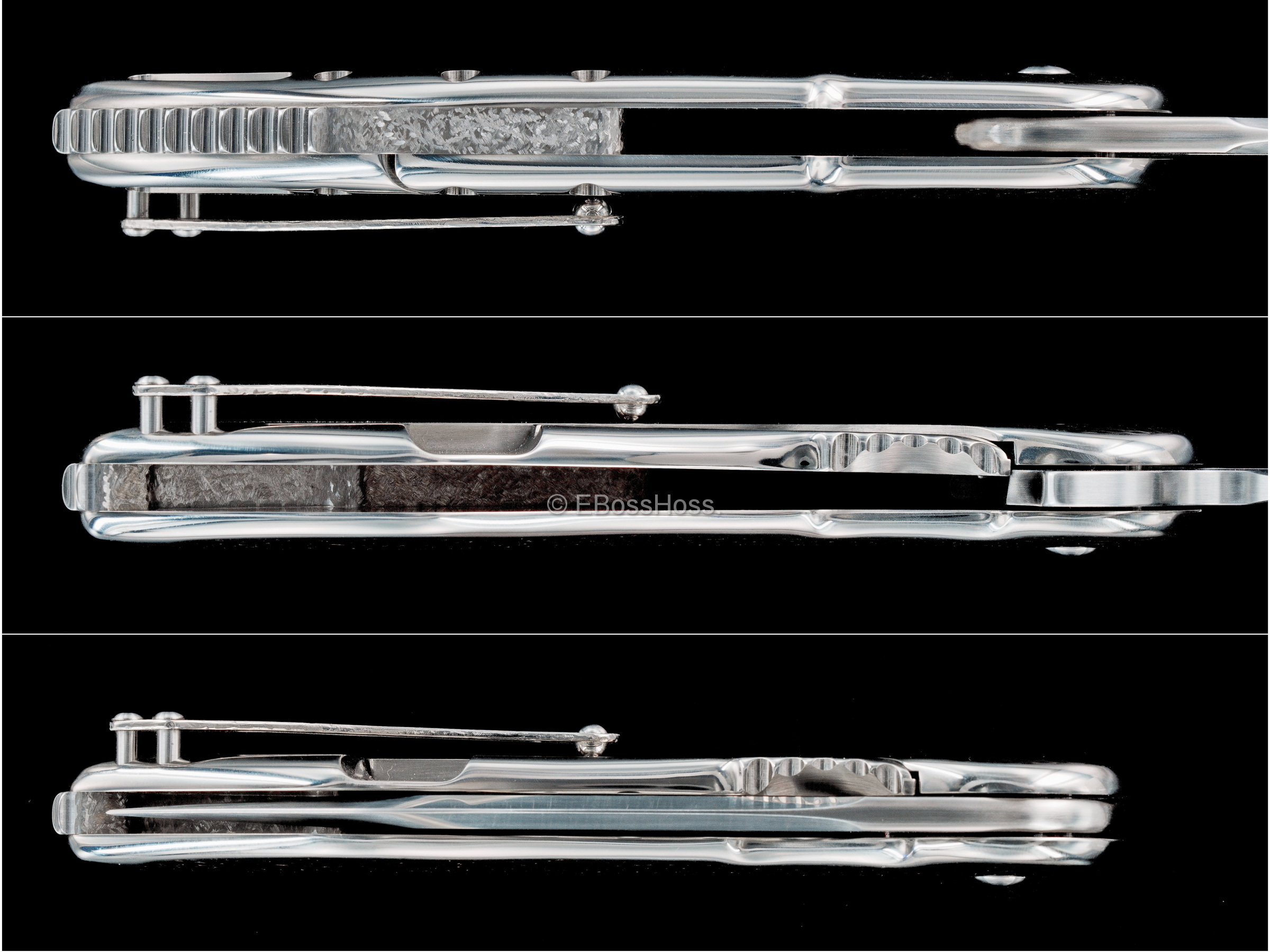 - 3-piece Tip-up High-Polished Skeletonized Texture-Tech Titanium Pocket Clip