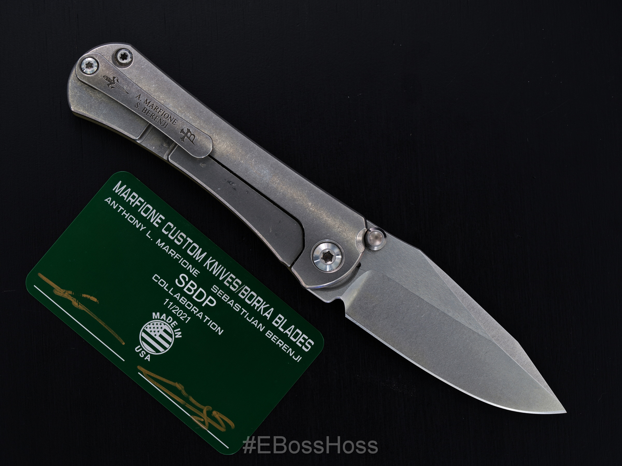 Knife "signed" A. Marfione - S. Berenji - Marfione Custom Logo - Borka Blades Logo