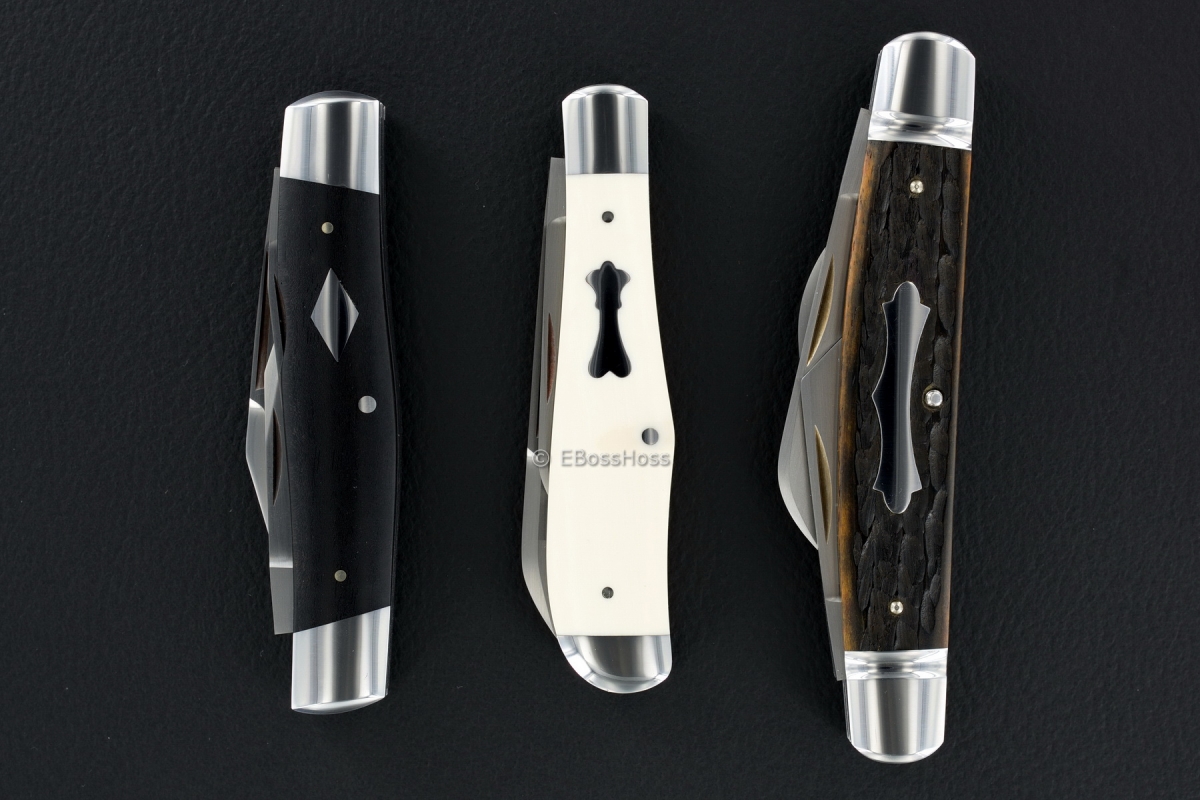 - SOLD - Tony Bose 3-Blade Cattle Knife Slipjoint; Ebony Handles, Slant Caps and Slant Bolsters, Diamond Cattle Escutcheon, Loud Walk and Talk, 154CM Steel, 3 11/16" Closed, New from the Bose Lottery at last weekend's 2015 Blade Show