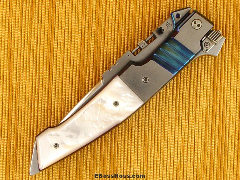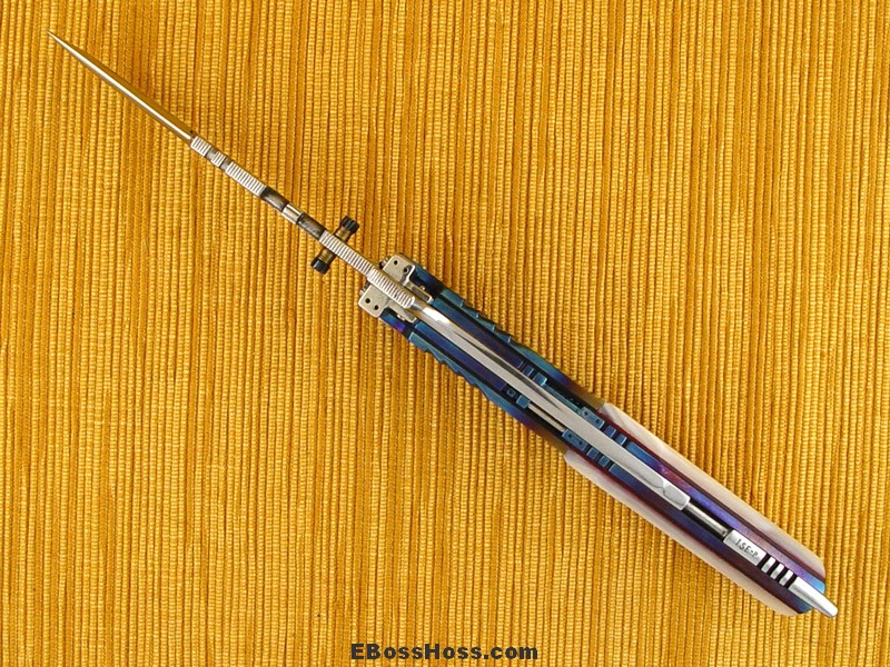 Carved & blue anodized titanium bolsters