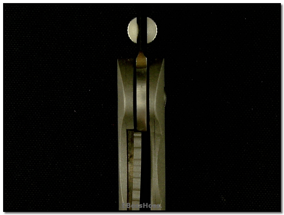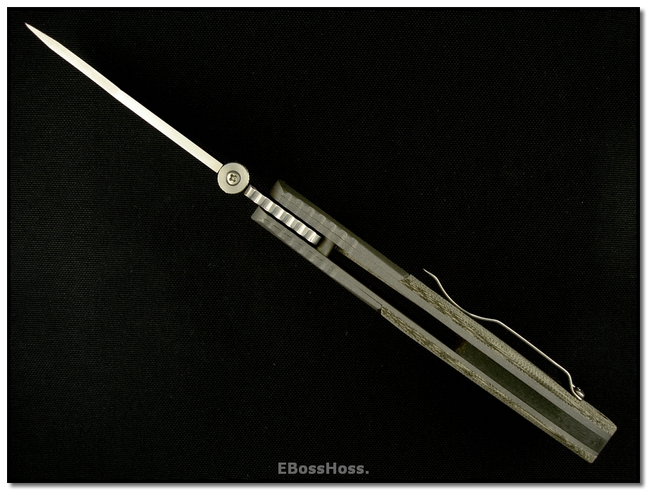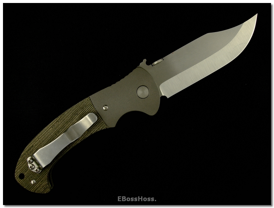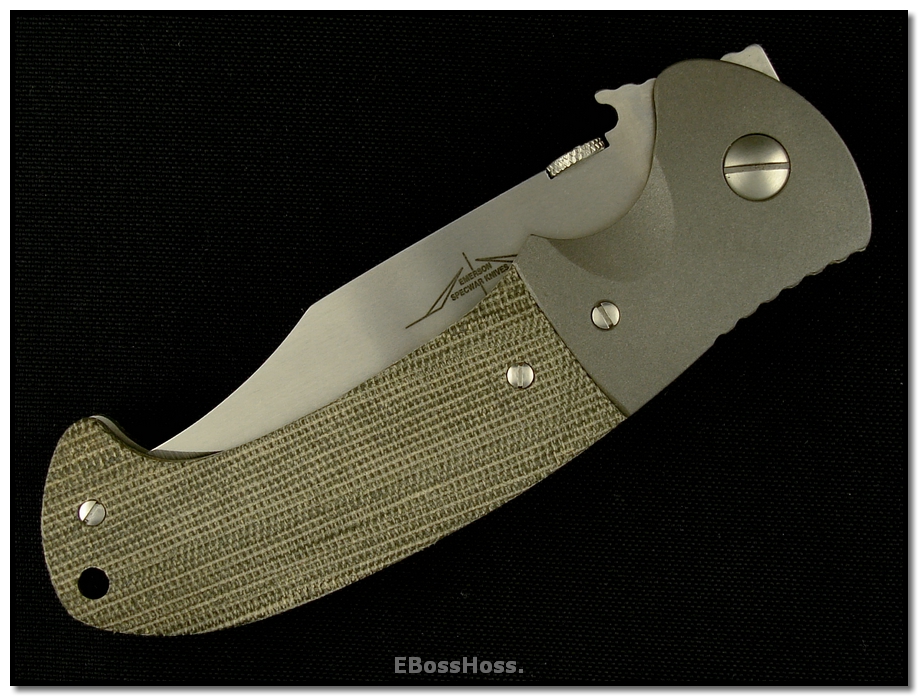 SOLD At last, a Bowie folder from Ernie--married up to a very ergonomic handle that features positive grip under all circumstances, wet or dry, and full control even if being grabbed.