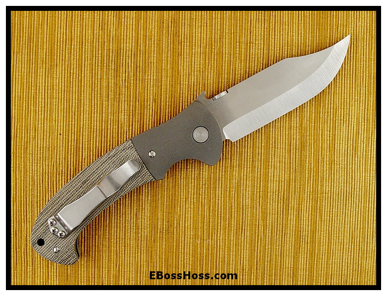 Not For Sale At last, a Bowie folder from Ernie--married up to a very ergonomic handle that features positive grip under all circumstances, wet or dry, and full control even if being grabbed.