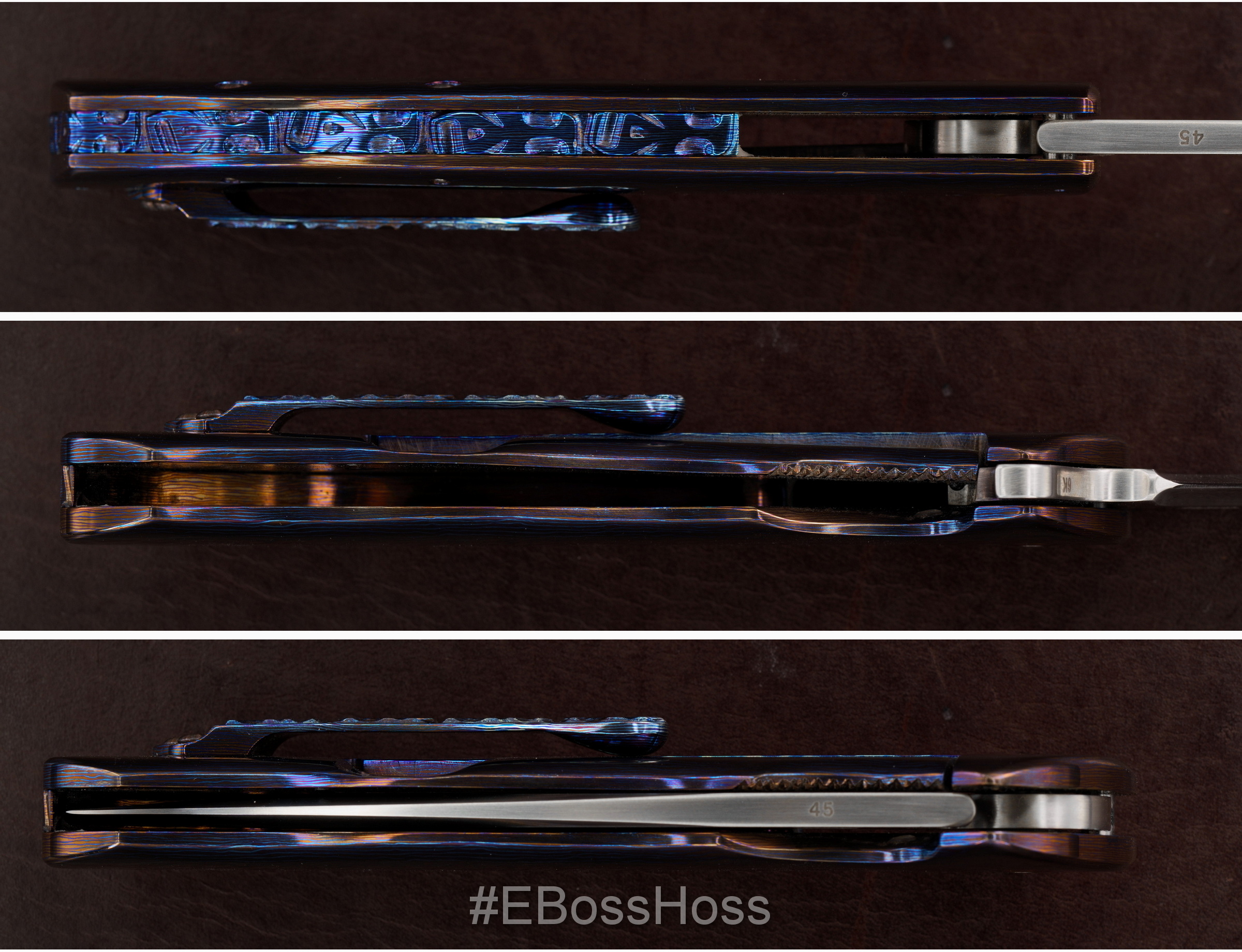 Beautiful Thick-stock Contoured &Sculpted Timascus Frame Lock Side