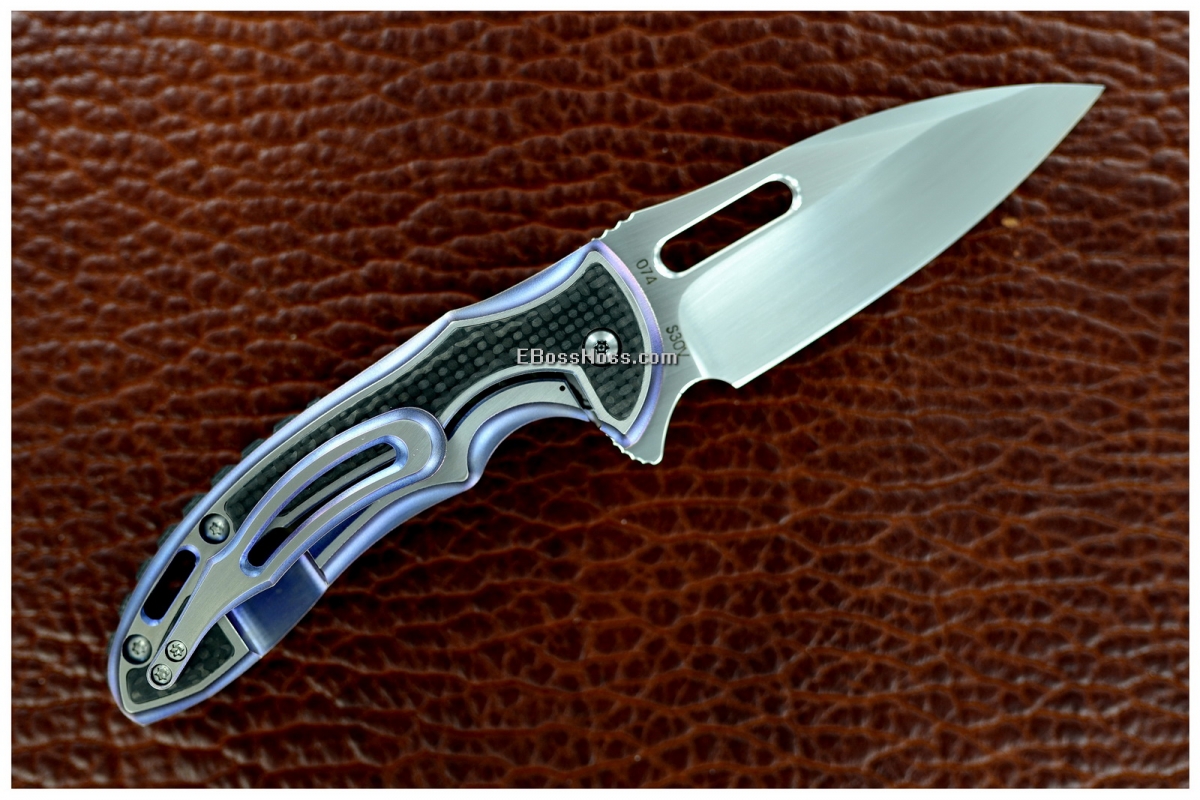 - Anodized Blurple and Satin-finished Integral Handle w/Carbon-Fiber Integral Bolster