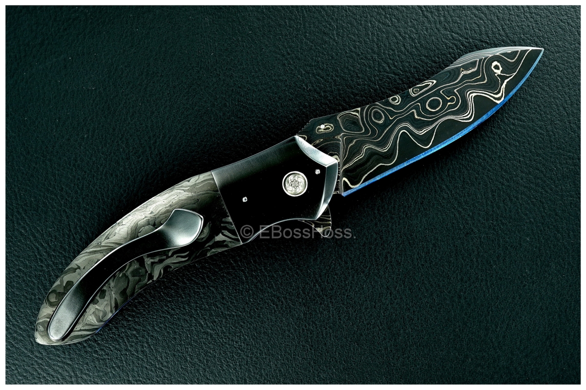 - Matching Sole-Authored Hot-Blued San Mai Nickel Damascus with a 1095 Steel Core Backstrap