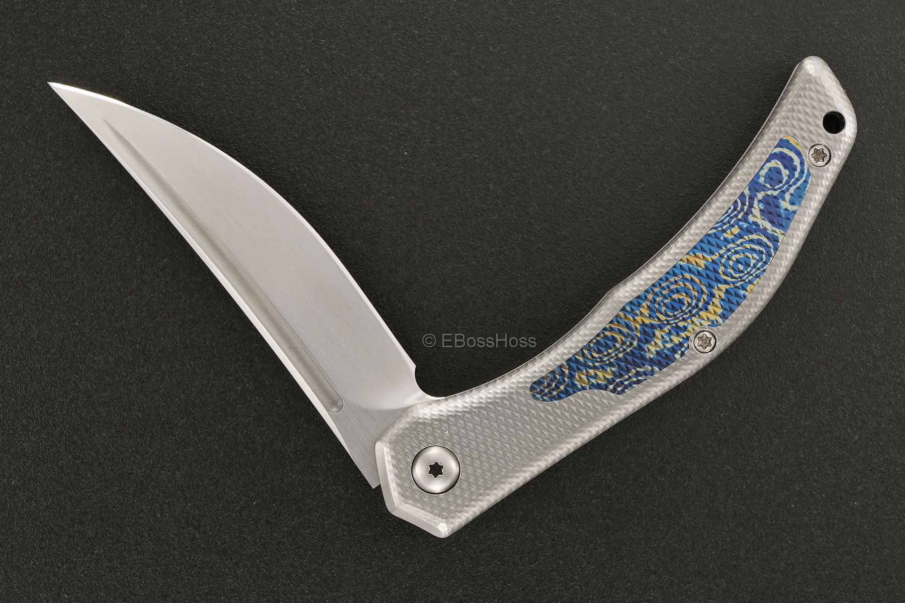 - Matching Contoured & Sculpted Textured-Titanium & Inlayed Moku-Ti Back Side Handle