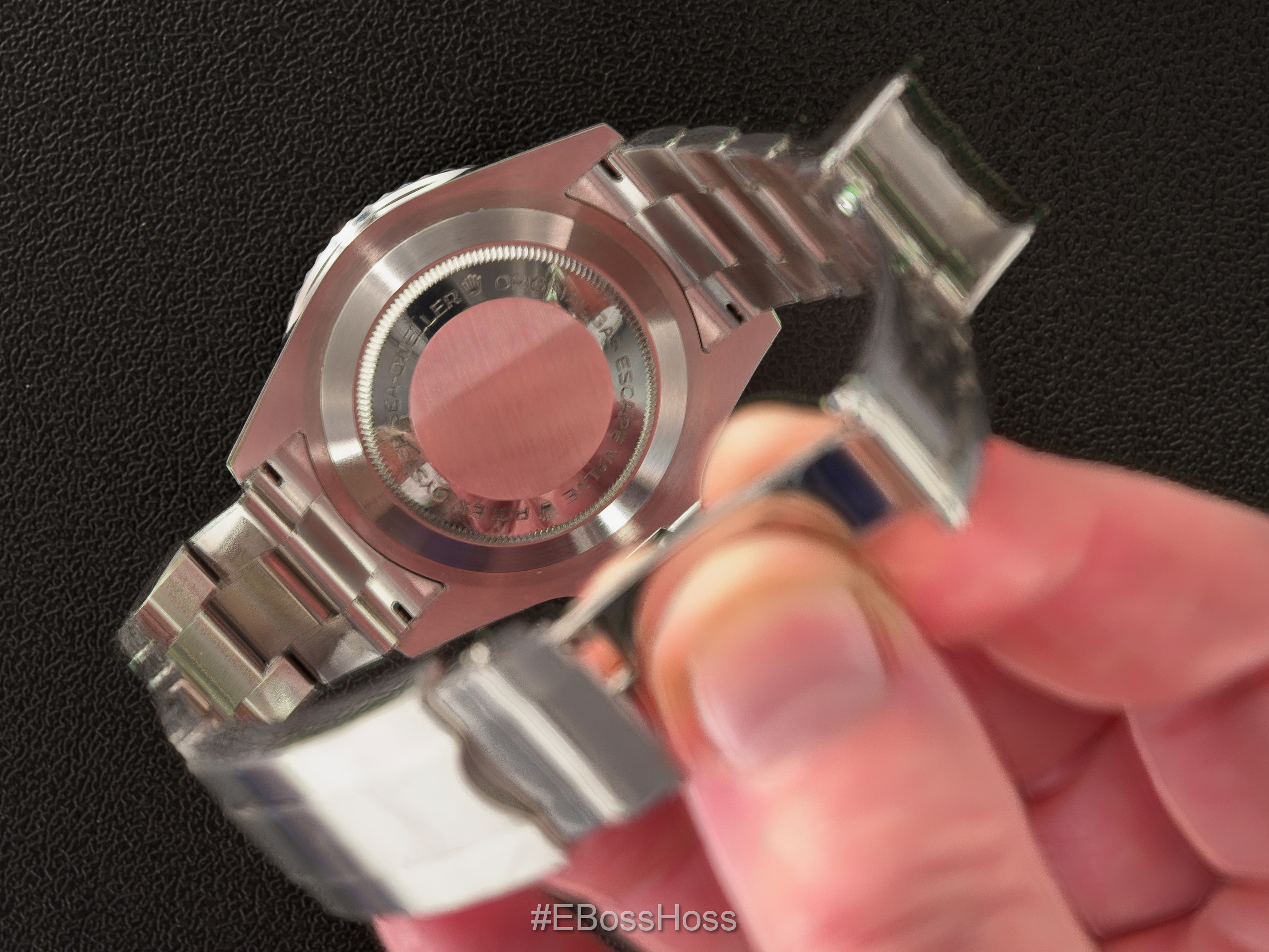 (I took pictures watermarked with "EBossHoss" of the actual Rolex 43mm SEA-DWELLER watch offered for sale here. Please scroll further down the page for additional pics.)
