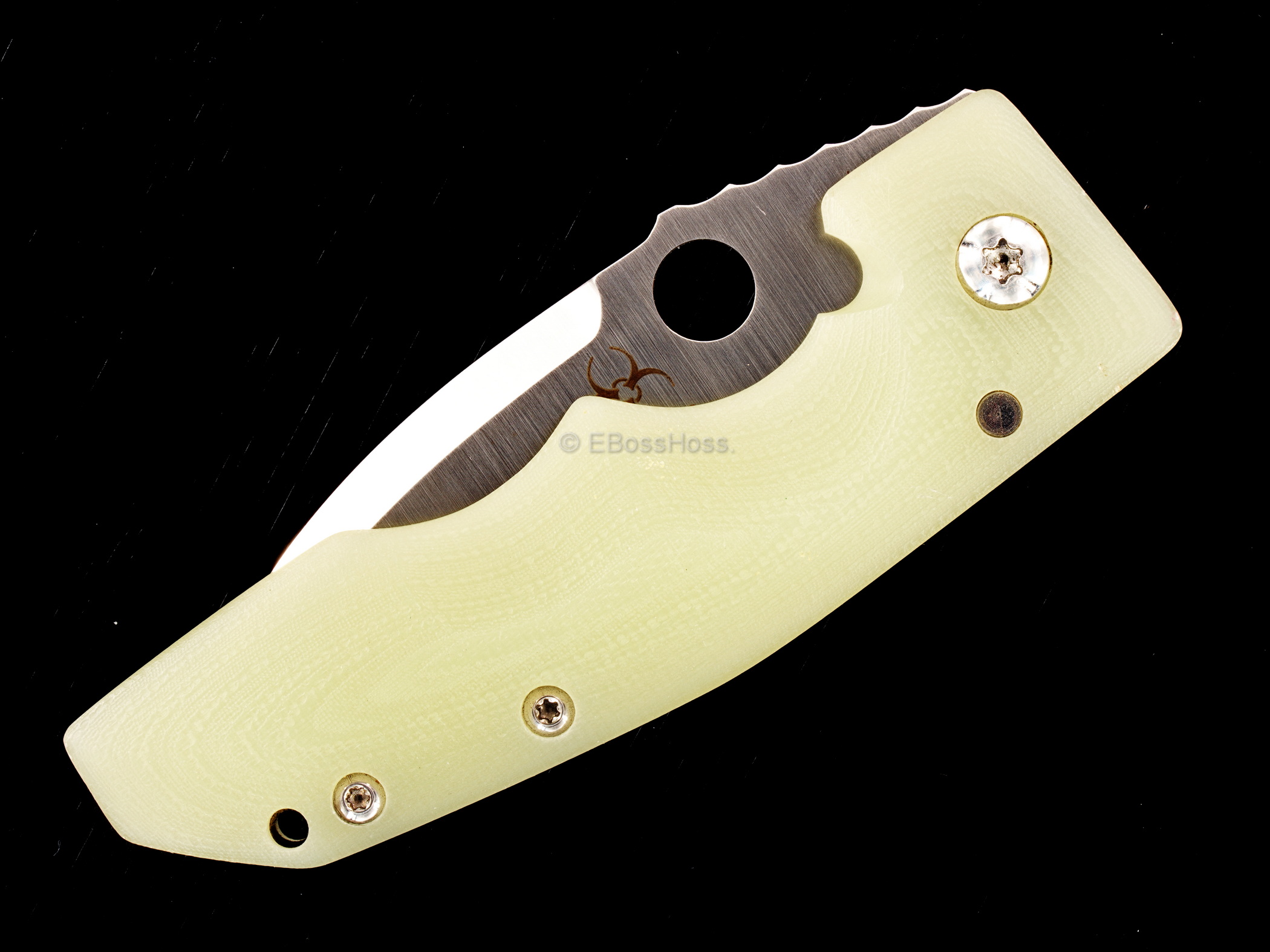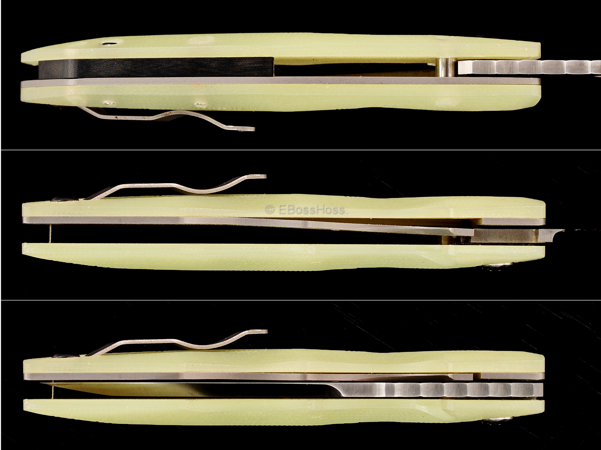 - Contoured and Sculpted Translucent Green G10 Handles