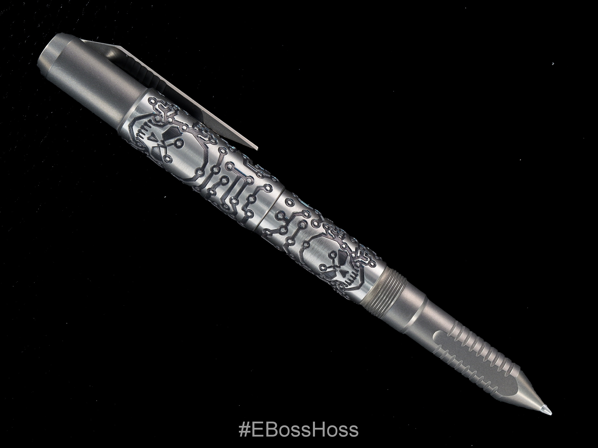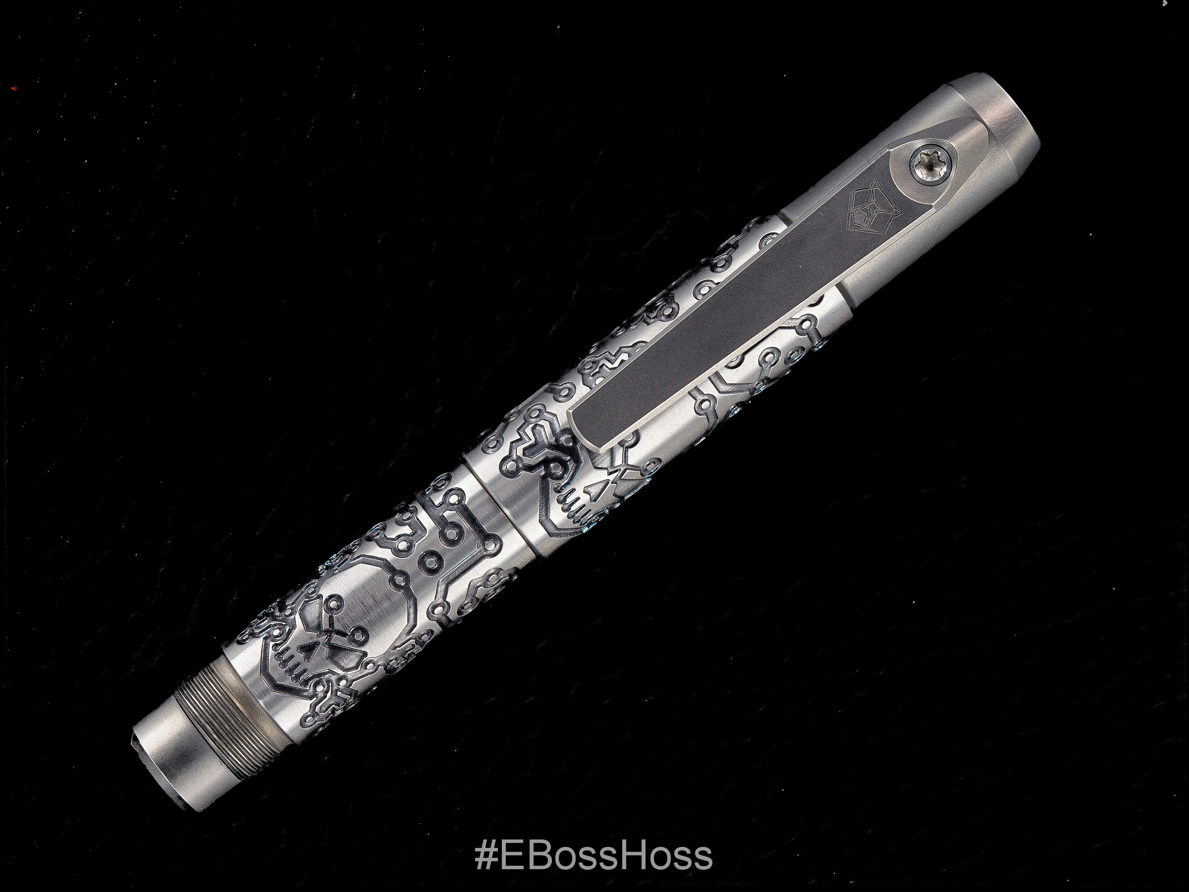 From Recon1: We’re proud to have the incredible machinist Mike Bond at Ti2Design @ti2design translate his iconic style from his creations to the Shirogorov Knives @shirogorov_knives pen tool. The artwork on this pen tool is not your typical laser engraving. These tool pens are created with a black Iridium Laser and coloring finish Titanium with a smooth bottom deep engraving in “Tech Pirate” pattern. Needless to say, the attention to detail on these tool pens is on another level!