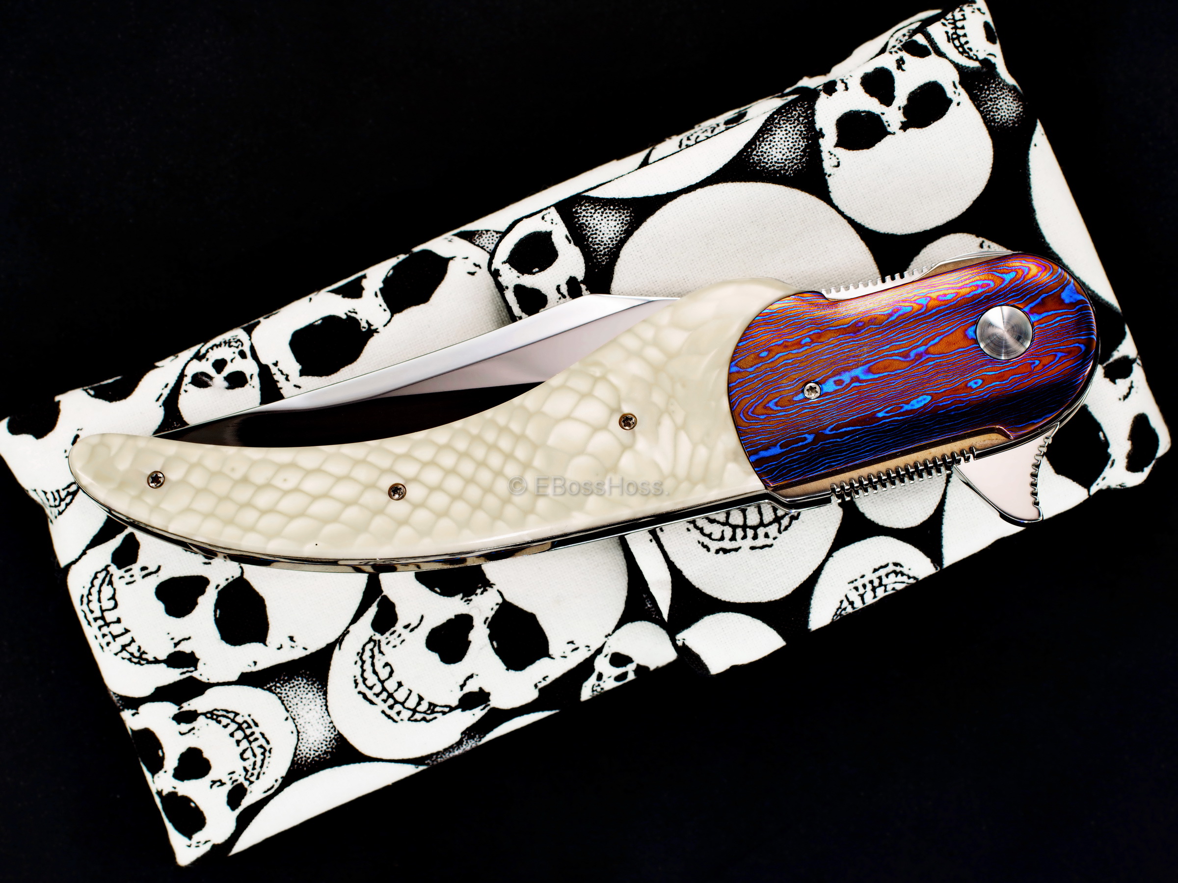 - Sculpted and Radiused and High-Polished Timascus Bolsters