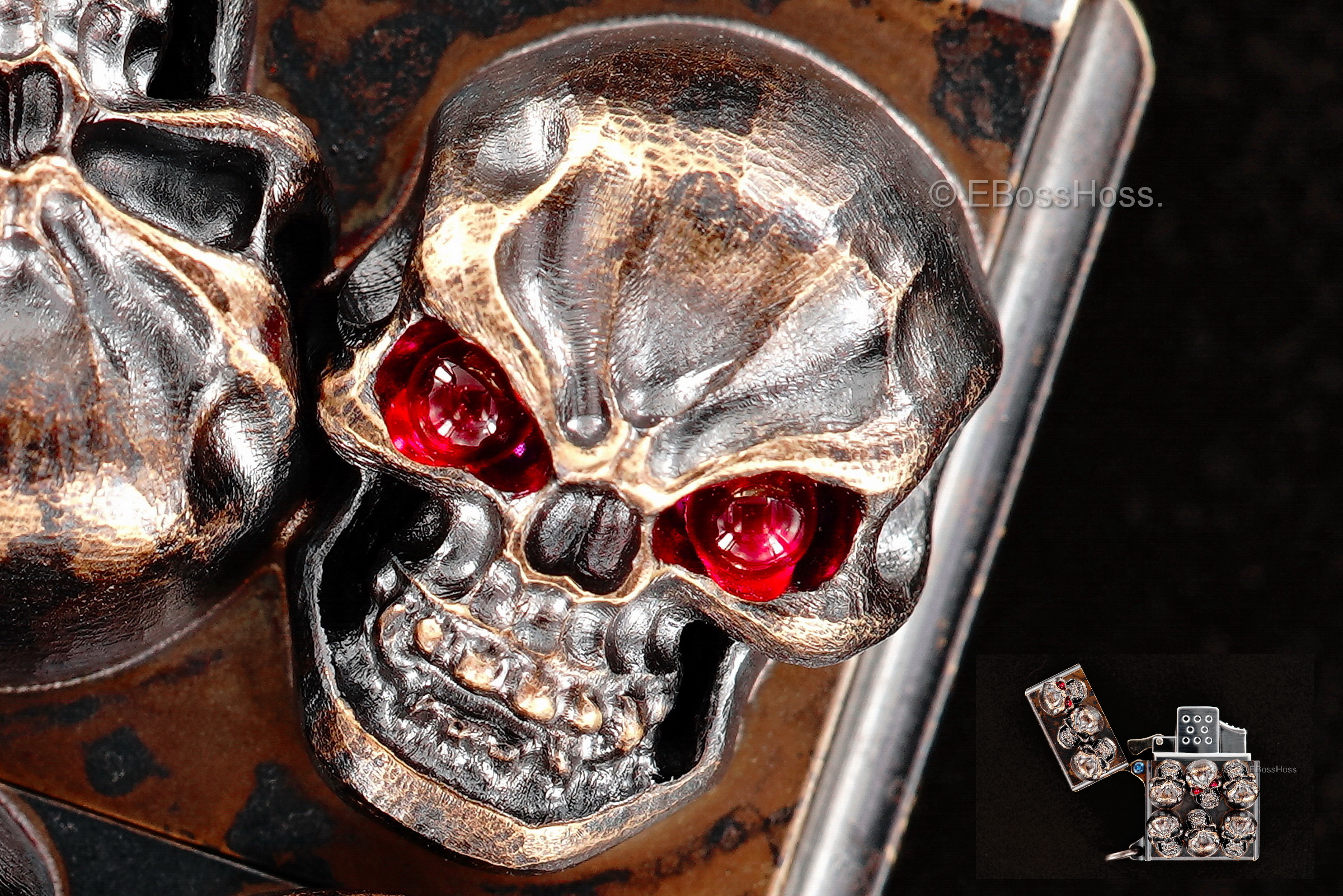 - Bronze Pile of Hardness Skulls including 2 Vigilant (with Synthetic Ruby Eyes)