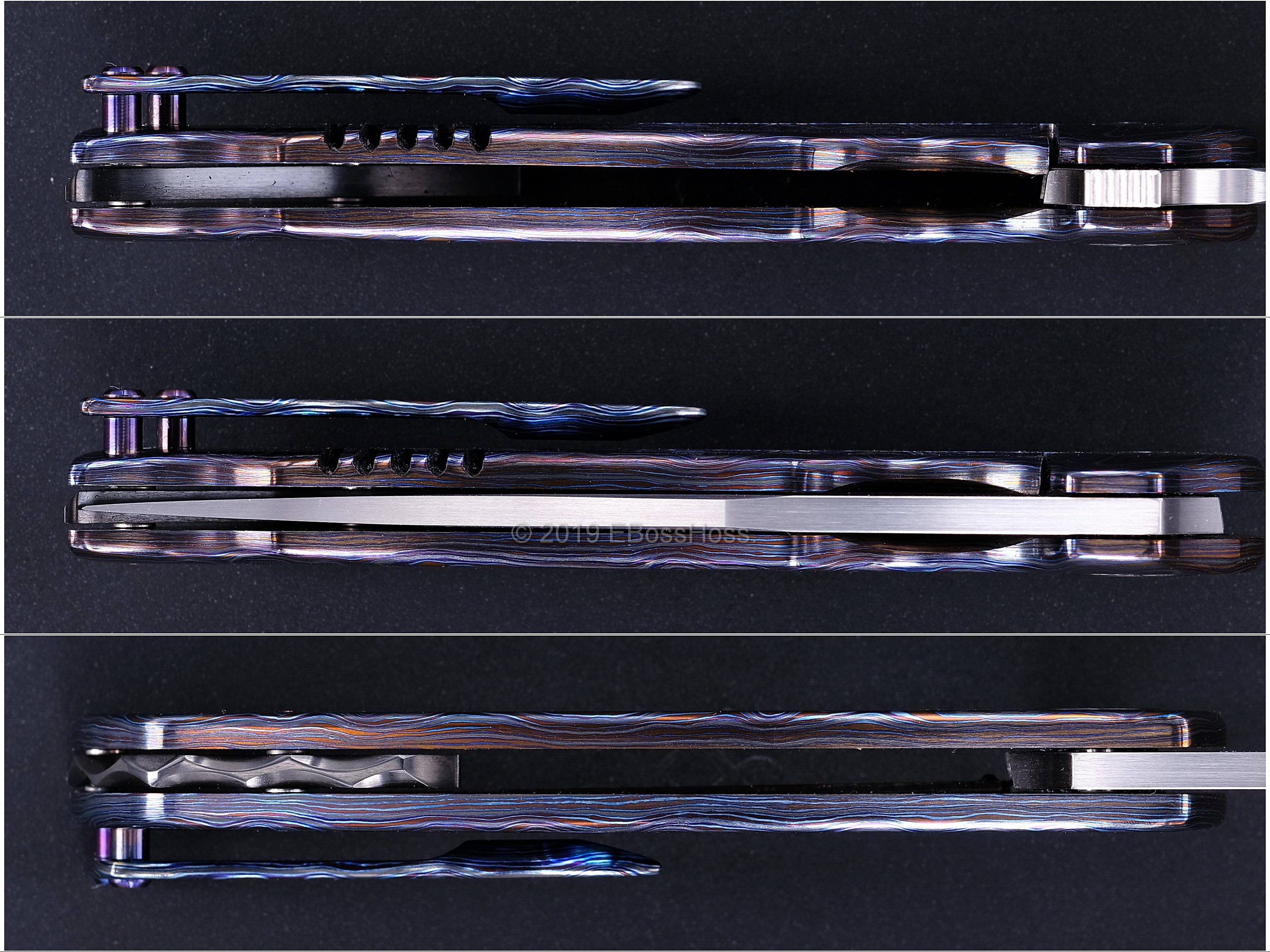 - Custom 3-piece Tip-up Milled 3-D Black Timascus Pocket Clip